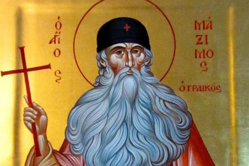 Преподобний Максим Грек (XV–XVI ст.) був сином багатого грецького чиновника в місті Арте, що в Албанії, отримав блискучу освіту. В юності він багато подорожував, вивчав мови і навчався в європейських країнах; побував у Парижі, Флоренції, Венеції. Після повернення на батьківщину прибув на Афон і прийняв чернецтво у Ватопедській обителі. Преподобний з захопленням вивчав стародавні рукописи, залишені на Афоні грецькими імператорами, котрі були іноками на Святій Горі, — Андроником Палеологом та Іоанном Кантакузеном.